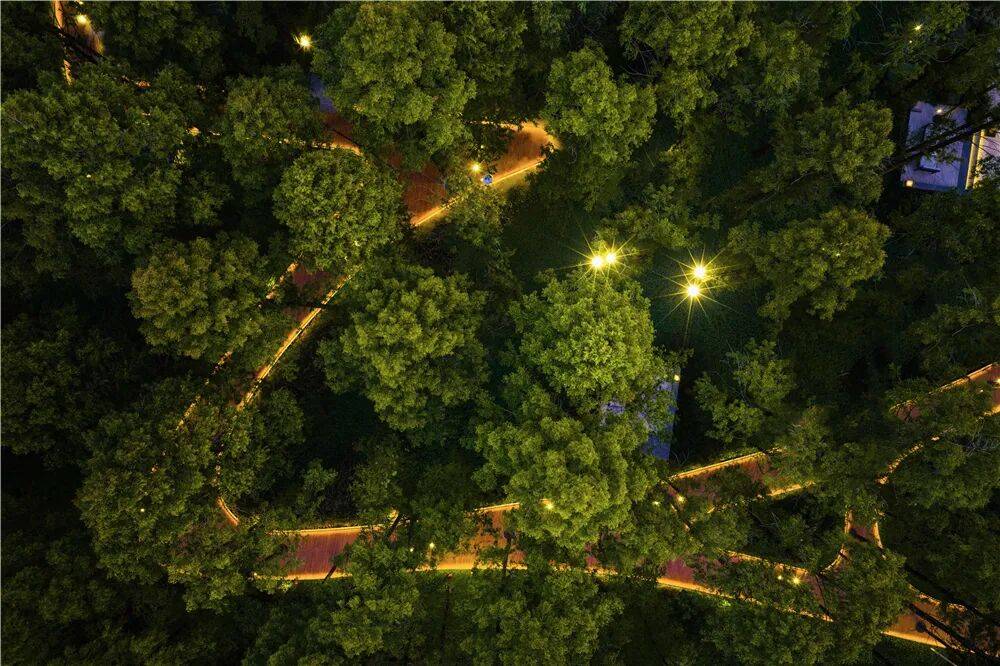 据说,在公园改造过程中,项目请来了GVL广州怡境国际设计集团,对每一棵红杉树进行航拍、定位、建档,然后在不改变这些树龄分布的前提下,对公园进行设计与施工,其难度可想而知。