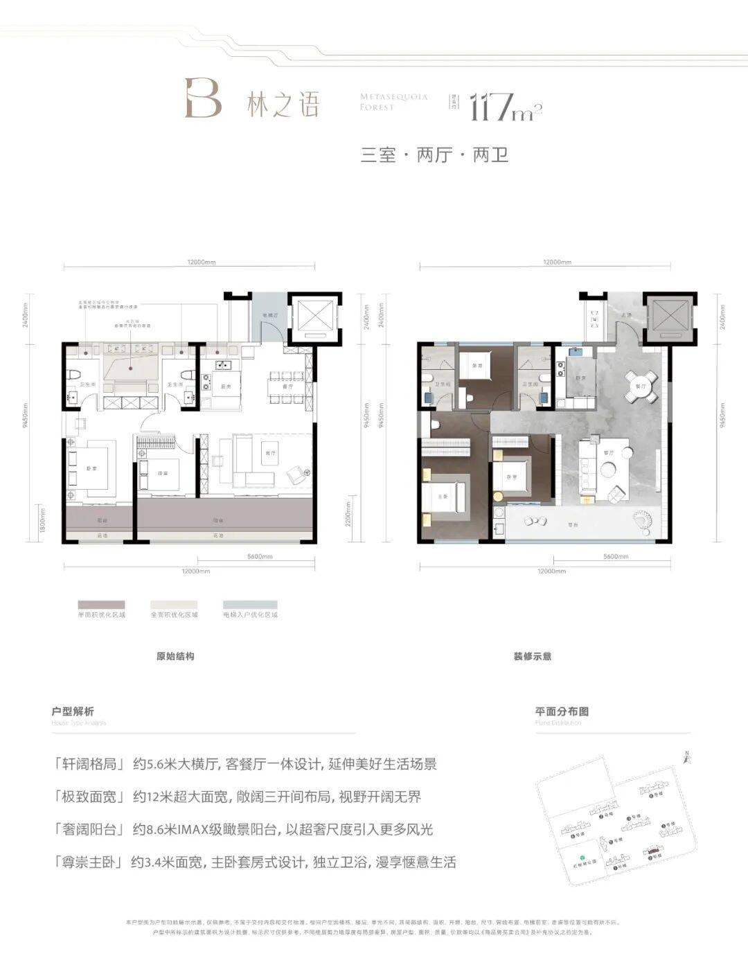 建面约117㎡的户型,阳台进深达到2.2米,建面约127㎡至131㎡户型,阳台进深达到2.4米。