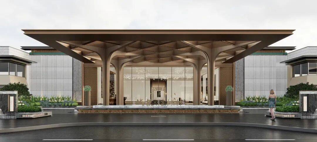 城投红树林门前是常青五路,是老城区双向四车道的小路,街道进深窄,因此并不适合做太宽的大门,否则非但无法起到舒适归家的作用,反而会造成更多公区面积浪费和运营成本浪费。
