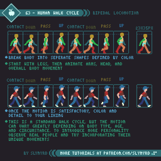 5. 像素画教程:人类行走动画拆解(Twi/X: rayslynyrd)