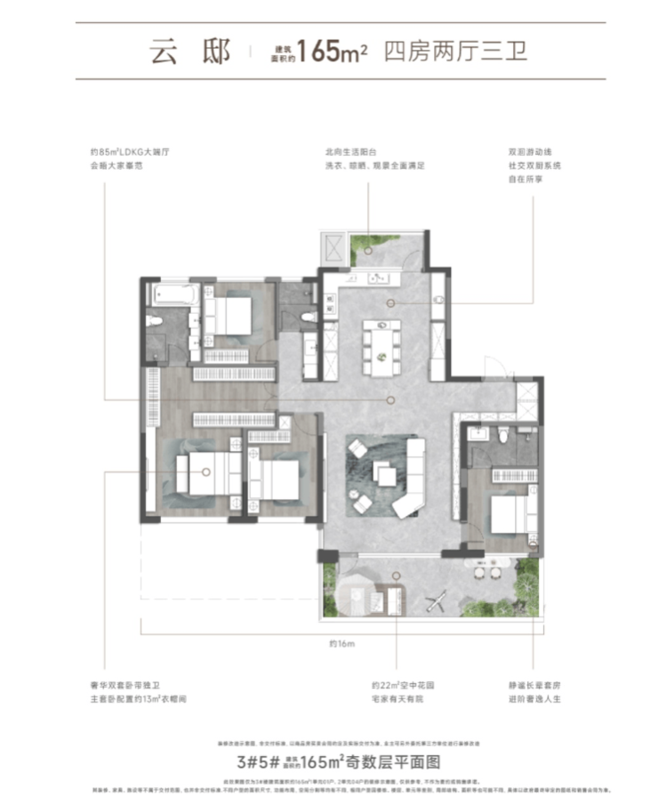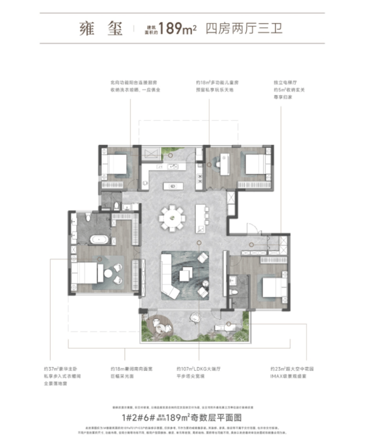 高端改善户型为四室两厅两卫及以上,面积在一百二十平米以上。户型空间阔绰,布局合理,尽显品质生活格调。入户玄关设计,增加了居住的私密性与收纳空间;超大客厅与餐厅相连,形成开阔的公共活动空间,适合家庭聚会与孩子举办生日派对;四个卧室均采光良好,空间宽敞,其中两个卧室可作为儿童房,满足二孩家庭的居住需求;主卧套房配备独立卫生间、衣帽间与观景飘窗,居住体验极佳;此外,户型还规划了独立的书房、琴房等功能空间,为孩子的才艺培养与学习提供了充足的空间。