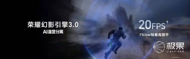 为了提高游戏体验,全系搭载荣耀幻影引擎3.0,通过AI渲显分离技术,能精准预测并优化卡顿帧,让游戏1%低帧最高提升20帧,保证复杂团战也不掉链子。