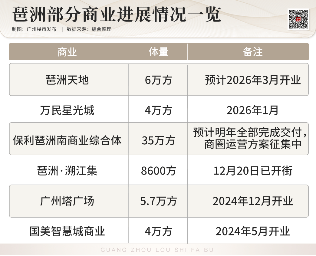 不过好在,一些大型的商业综合体,也在赶来路上,如琶洲天地、万民星光城,已经曝出将在明年一季度开业,而琶洲南区约35万方商业综合体,也将在明年登场。