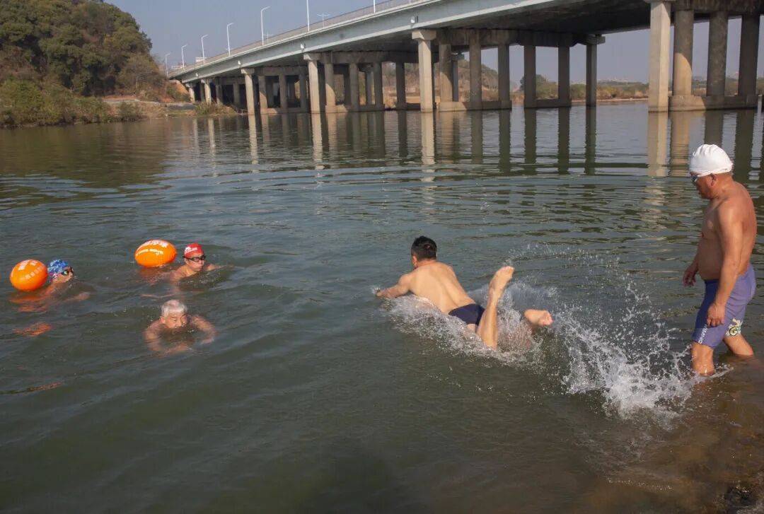 1月1日,衢州市柯城区老鹰潭冬泳队的数十名冬泳爱好者齐聚常山江边的老鹰潭,举行庆新年冬日畅游活动。以此挑战严寒,辞旧迎新。