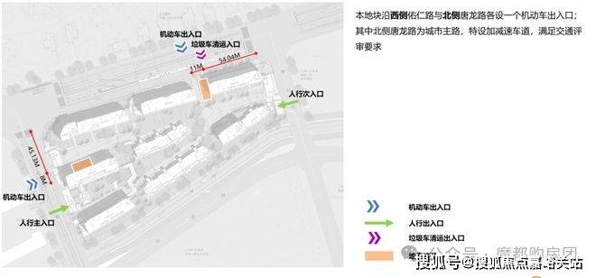 小区采用全人车分流设计,主入口位于西侧佑仁路,通行便捷有序。大门庄重大气,门头通过横向感拉槽与奢石景墙巧妙结合,搭配序列感植物,营造秩序感与昭示性。主入口三进式礼序,仪式感与功能性兼备。一进为酒店式落客和车马厅,以礼遇之姿迎接业主归家,大堂尽显尊崇;二进静谧水院、会客廊架、下沉庭院相互呼应,形成意境洄游空间;三进风雨连廊相伴,带来伴水归家惬意体验。次入口在东侧,方便出行。