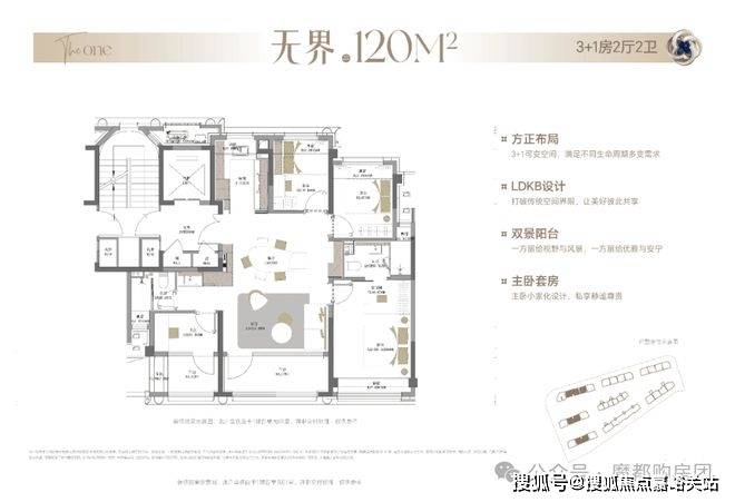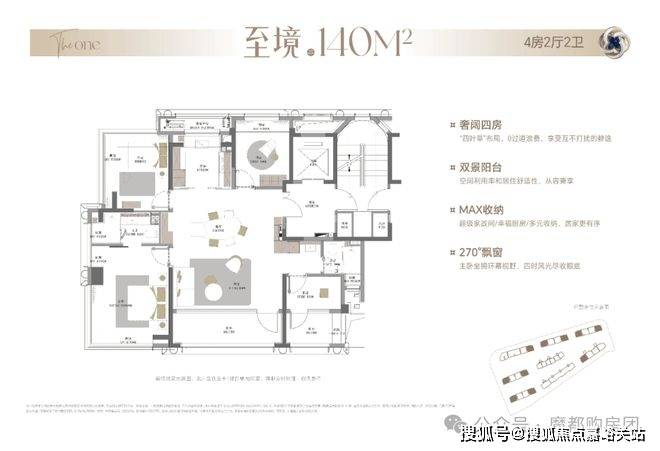 整体布局与140㎡户型基本一致,双南向阳台、独享电梯厅、6飘窗等户型拓展面积超过18㎡!
