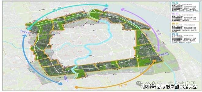 十四五规划金色中环进入2.0版发展阶段——开始上海金色中城新篇章,城市设计方案征集正式启动,规划能级从区级提升至市级对齐纽约“曼哈顿中城”。囊括浦东新区、普陀区、长宁区、徐汇区、闵行区、宝山区、嘉定区7个行政区,分为四段、十六个单元,同时聚焦上海下一条轨交环线号线及沿线重点板块,如张江科学城、漕河泾开发区等关键节点,以优化交通体系与产业布局。(从区级向市级能级跳跃)