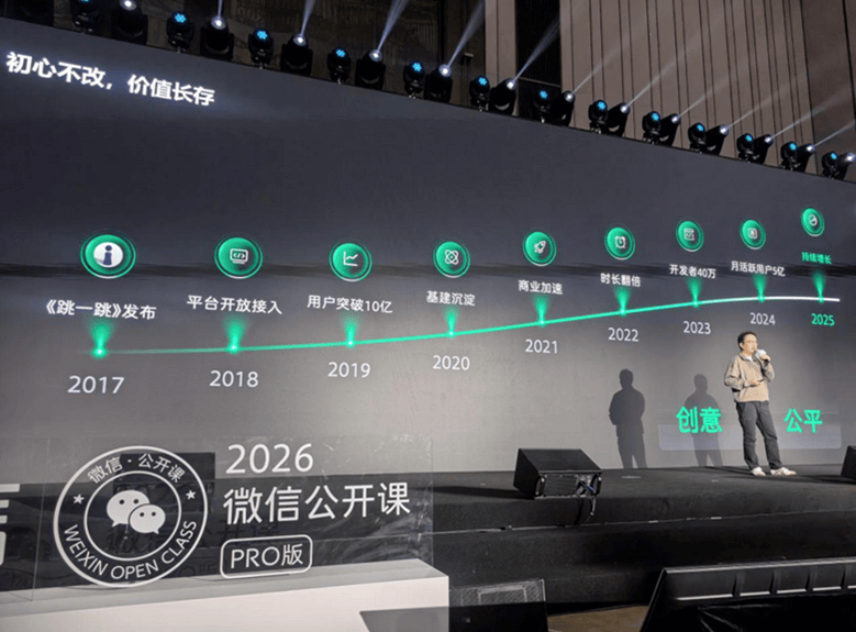 1月15日,“2026微信公开课PRO”于广州举行。微信小游戏产品总监李卿在会上做了主题演讲,回顾了小游戏平台九年的发展历程,并分享了2025年微信小游戏的最新生态数据。演讲中提到,2025年整个微信小游戏商业规模有接近20%的增速,累计服务开发者超过40万,其中超过八成是不足30人的中小团队;有近70款游戏达成百万以上DAU,超300款游戏单季度流水超过千万元,超过5000家开发者首次在小游戏平台进行了发布,和去年相比都有明显提升;在用户方面,当前小游戏月活用户超过5亿,在用户画像上相对稳定,其中月活跃10天以上的高时长、高留存用户同比增长27%。