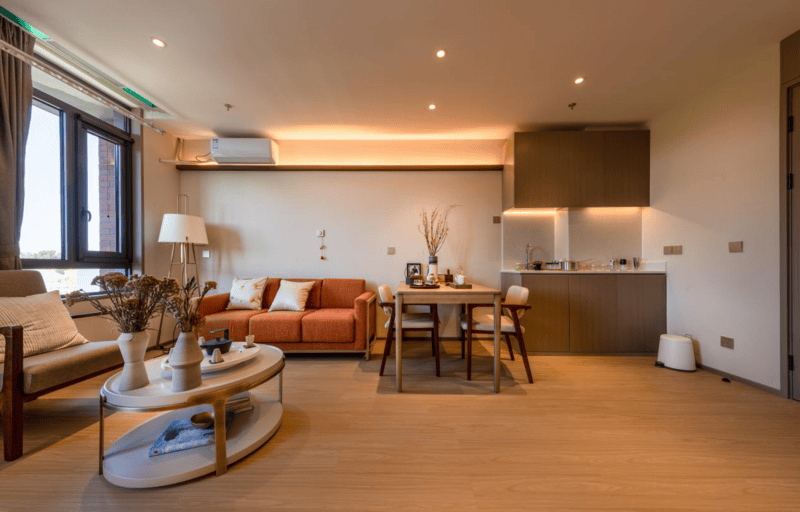 ▶ 房型:全部朝阳,配备独立厨房和无障碍卫浴空间,床榻加宽、床垫软硬适中,家具质感柔和,兼顾舒适度与安全性;