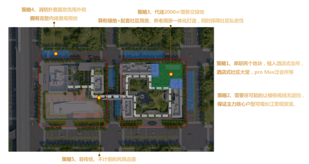 经过多次的自我否定和彻底颠覆,D10决定采用“法线布局+消防登高场外移”的策略,将内部完整景观空间释放出来,并通过双层立体动线(二层流光桥+地面风雨连廊),把两个割裂的地块串联起来,形成了“无边界社区”。