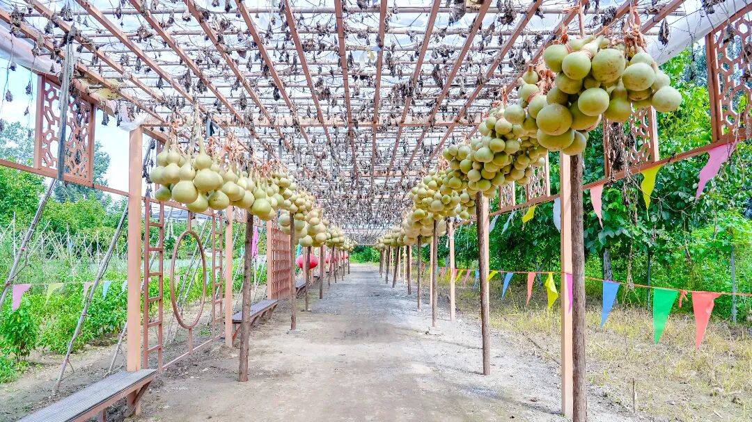 文化中心探索出“非遗赋能、全民参与、共同增收”的可持续发展模式。通过开设高素质农民培训班,向村民传授葫芦种植、浸烙葫芦等技艺,成熟葫芦由基地统一回收销售,让田间作物变身“致富宝贝”;不少村民转型为非遗传承人,在家门口实现就业,部分村民借着园区客流开办农家乐,吃上“旅游饭”。